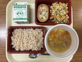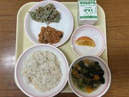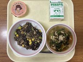 お祝いの時に食べると縁起が良いとされる赤飯や沖縄のお祝い料理にはかかせないクーブイリチーやイナムドゥチを給食に提供しています。